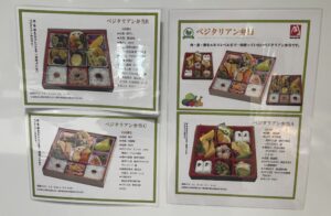 様々なメニューが提供され、ベジタリアン寿司、えきそば天ぷら、ベジタリアンミニカツ、