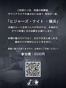 サウジアラビア料理と文化体験をお届けする「ヒジャーズ・ナイト・横浜」を開催します!
